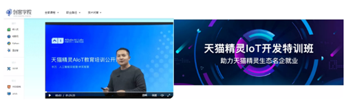 華清遠見和阿里云合作升級了物聯網專業課程體系,引入天貓精靈IoT開放平臺進行項目開發與學習,共同打造IoT實戰型人才。同時研發中心也自主研發了用于高校教學實訓用的天貓精靈IoT開發套件,可實現AIoT技術項目落地。在2020年年底,我們與阿里云一起舉辦的“阿里云物聯網百校公益行”活動也已經全面展開。