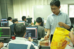 9月20日,華清遠見的幾位工作人員在班主任王老師的帶領下,滿懷著喜悅的心情,將每一塊月餅發送到學院在讀的每位同學手中,也同時將一份關懷送到每個同學的心中。看到同學們迫不及待的打開包裝、開始食用,各位老師的內心都非常滿足。有的同學開心的笑道:我的月餅是雙黃蓮蓉,太棒了,我喜歡吃這個口味!有的同學手拿兩塊餅說:這是我今年第一塊月餅,非常感謝老師!甚至有的學員,藏起來月餅之后,大聲說道:老師我這少發一塊。看到同學們如此快樂的心情,我們的心里更美。