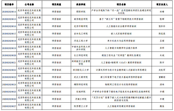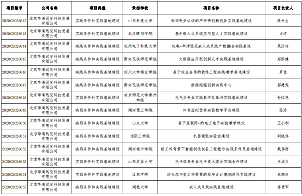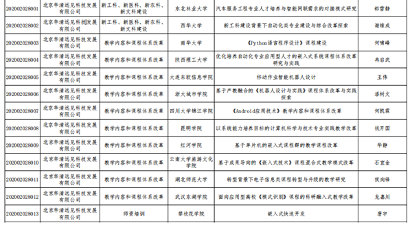 華清遠見根據《教育部高等教育司關于公布有關企業支持的產學合作協同育人項目申報指南(2020年第一批)的通知》要求,高度重視并積極組織有關高校師生提交項目申請,組織專家對申報項目進行遴選并公示。