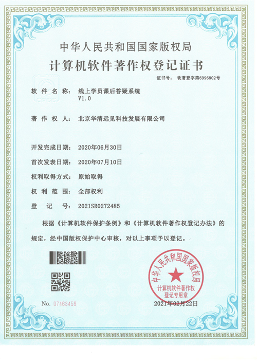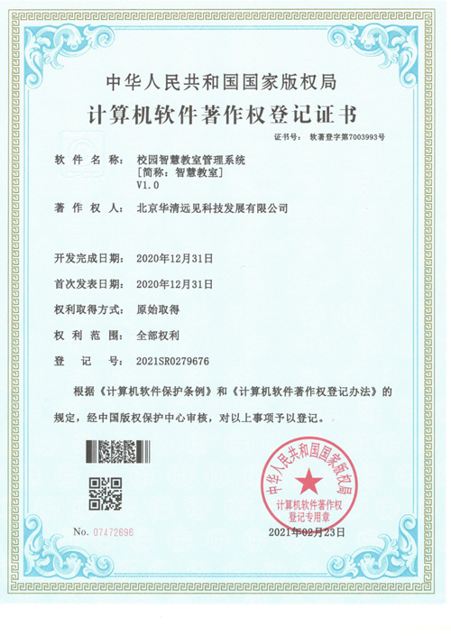 重磅 | 華清遠(yuǎn)見榮獲3項國家計算機(jī)軟件著作權(quán)證書