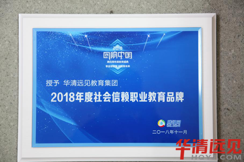 【華清遠(yuǎn)見榮獲騰訊網(wǎng)回響中國(guó)“2018年度社會(huì)信賴職業(yè)教育品牌”】