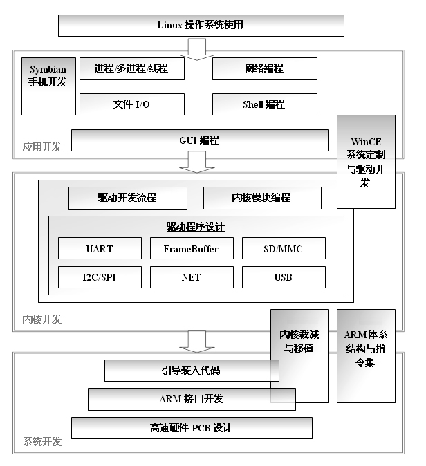 · 課程設(shè)計(jì)之初,華清遠(yuǎn)見(jiàn)公司就聯(lián)合三星、微軟等著名企業(yè),直接面向企業(yè)對(duì)嵌入式軟件行業(yè)的職位需求進(jìn)行了全方位的調(diào)研,推出“職業(yè)領(lǐng)航課程”,直接面向職業(yè)崗位; · 課程采用“理論講解 + 課堂實(shí)驗(yàn) + 項(xiàng)目實(shí)戰(zhàn)”的授課模式,項(xiàng)目試驗(yàn)貫穿整個(gè)教學(xué)過(guò)程中,同時(shí)加強(qiáng)教師與學(xué)員的互動(dòng)交流,使學(xué)員在實(shí)驗(yàn)中掌握理論知識(shí),在實(shí)戰(zhàn)中提高動(dòng)手能力并通過(guò)項(xiàng)目實(shí)踐具備企業(yè)需求的工作經(jīng)驗(yàn); · 課程涵蓋了目前嵌入式開(kāi)發(fā)的主流工具和技術(shù),以嵌入式linux開(kāi)發(fā)為主,為拓寬學(xué)員知識(shí)面適應(yīng)各種嵌入式操作系統(tǒng)產(chǎn)品需求,在課程內(nèi)容中還安排了WinCE、Symbian開(kāi)發(fā)的內(nèi)容,使學(xué)員具備其它嵌入式操作系統(tǒng)的開(kāi)發(fā)能力。