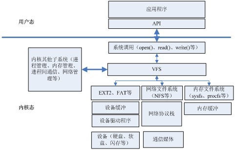 Linux系統(tǒng)成功的關(guān)鍵因素之一就是具有與其他操作系統(tǒng)和諧共存的能力。Linux的文件系統(tǒng)由兩層結(jié)構(gòu)構(gòu)建:第一層是虛擬文件系統(tǒng)(VFS),第二層是各種不同的具體的文件系統(tǒng)。 VFS就是把各種具體的文件系統(tǒng)的公共部分抽取出來(lái),形成一個(gè)抽象層,是系統(tǒng)內(nèi)核的一部分,它位于用戶程序和具體的文件系統(tǒng)之間。它對(duì)用戶程序提供了標(biāo)準(zhǔn)的文件系統(tǒng)調(diào)用接口,對(duì)具體的文件系統(tǒng)(如EXT2、FAT32等),它通過(guò)一系列的對(duì)不同文件系統(tǒng)公用的函數(shù)指針來(lái)實(shí)際調(diào)用具體的文件系統(tǒng)函數(shù),完成實(shí)際的各有差異的操作。任何使用文件系統(tǒng)的程序必須經(jīng)過(guò)這層接口來(lái)使用它。通過(guò)這樣的方式,VFS就對(duì)用戶屏蔽了底層文件系統(tǒng)的實(shí)現(xiàn)細(xì)節(jié)和差異。 VFS不僅可以對(duì)具體文件系統(tǒng)的數(shù)據(jù)結(jié)構(gòu)進(jìn)行抽象,以一種統(tǒng)一的數(shù)據(jù)結(jié)構(gòu)進(jìn)行管理,并且還可以接受用戶層的系統(tǒng)調(diào)用,如open()、read()、write()、stat()、link()等。此外,它還支持多種具體文件系統(tǒng)之間的相互訪問(wèn),接受內(nèi)核其他子系統(tǒng)的操作請(qǐng)求,例如,內(nèi)存管理和進(jìn)程調(diào)度。VFS在Linux系統(tǒng)中的位置如圖2.2所示。