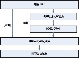 1)exit()和_exit()函數(shù)說明 exit()和_exit()函數(shù)都是用來終止進程的。當程序執(zhí)行到exit()或_exit()時,進程會無條件地停止剩下的所有操作,清除各種數(shù)據(jù)結構,并終止本進程的運行。但是,這兩個函數(shù)還是有區(qū)別的,其調用過程如圖1所示。