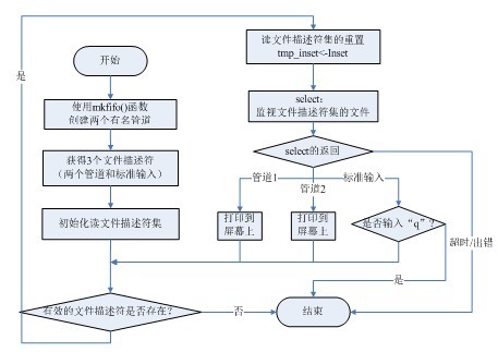 這里采用管道函數創建有名管道(并不是在控制臺下輸入命令),而且使用select()函數替代poll()函數實現多路復用(使用select()函數是出于以演示為目的)。