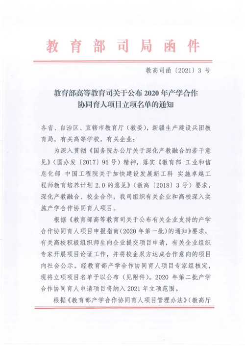 華清遠見關于教育部高教司2020年第一批產學合作協同育人項目獲批立項名單公布