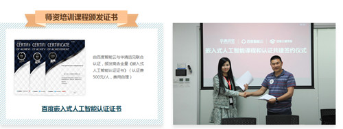 頒發(fā)由百度智能云與華清遠(yuǎn)見聯(lián)合認(rèn)證的《嵌入式人工智能認(rèn)證證書》。