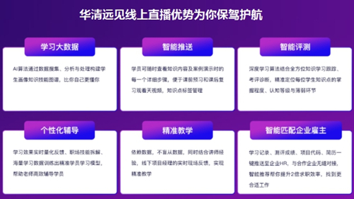 華清遠見在全國十二大校擁有200+就業保障團隊,幫助學員提前做好就業指導、面試、筆試、職場素養培訓等求職環節準備工作,助力學員高薪就業。產學研一體化的企業發展模式,可以最大化的幫助每一位學員建立更具職業發展前景和錢景的職業發展規劃,避免走彎路。