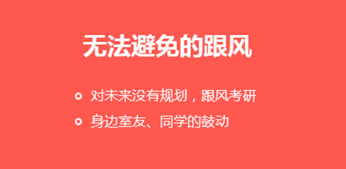 第二,沒有頭緒的跟風,這也是人數最多的考研熱原因。獨生子女讓每個孩子從小便享受著家庭獨一份的呵護,父母將他們送入了大學,替他們選擇了某個親戚鄰居的孩子畢業后拿到高薪的計算機相關專業,卻忘了他們根本還不是具備獨立思考和規劃能力的成年人——哪怕他們自己也是這么聲稱的。他們對自己的未來毫無也不會規劃,在渾渾噩噩中度過大學的前三年后,為了給父母和自己一個借口,面臨畢業的他們在室友、同學和老師的鼓動下,跟風考研。