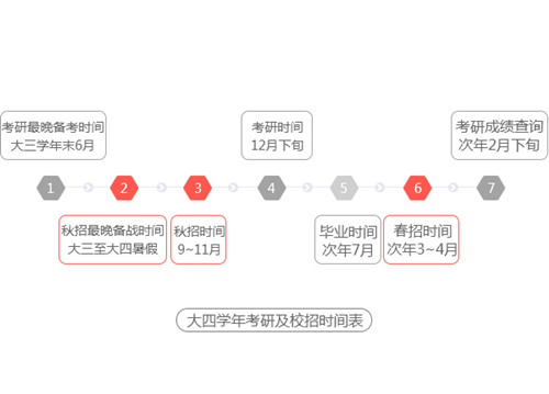 考生通常會在大三開學的7月份時開始關注考研,備考越早當然越好,但最晚也會在大三期末前的6月份著手準備。即使如此,到年底12月中旬的初試也有整整六個月時間。這期間,由高校和各企業聯合舉辦的秋季校園招聘會將在大四9月份開學后舉辦,持續兩到三個月,為不考研的同學提供充足的時間選擇和面試。