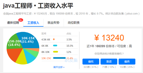 數(shù)據(jù)來(lái)源:職友集2019年全國(guó)java工程師平均工資