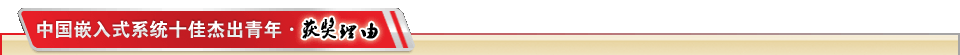 本屆嵌入式系統十佳杰出青年候選人的條件是:在嵌入式系統產業中作出突出貢獻的,或有關部委級、省市級獲獎項目的負責人,或外有重大影響的著作或論文的作者,或在同類產品中全國市場占有率名列前茅的項目負責人等。作為唯一一家以提供培訓和技術咨詢服務為主的企業負責人,評委會給出的獲獎理由是: