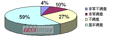 在???公司所給予的成長空間的調查??,接??60%的工程師表示基本滿意??27%的工程師表示不滿意,非常滿意和非常不滿意則均??10%??4%左右。從這組數據??以看到,在嵌入式行業內,??司???嵌入式工程師給予了比較多的關注,關心他??的成長,盡量降低他們的流動率,這??能也與目前嵌入式工程師比較緊缺有關系??