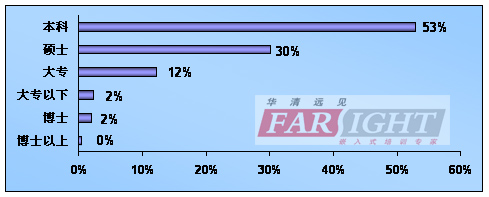 調查數據顯示,嵌入式開發從業人員???歷以本科(53%)和碩士??30%)居多,占所有參與調查人員的83%,這??一??相當大的比率。大專???歷??12%,而大專???歷以下、博??和博??以上學歷均分??僅占2%。嵌入式開發目前屬于高??研發領域,??????歷要求較高,嵌入式從業人員至少應具備大專???歷基???(???算機相關專業),本科以及???士則是這一領域從業人員的主體。從另???一??角度來???,這里的數??同樣也可以向我們展示企業在招聘嵌入式開發工程師時的基本學歷要求??