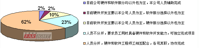 ??項調查數??顯示,在大部分從事嵌入式產品研發的企業中,基??都是采用????件人員分工合作完成產品的開發(60%多),由此我????以看到企業需要的還是擅長某一方向的專才,招聘網站的搜索數??也體現了這一點,??前嵌入式??件開發人才的需求量遠遠大于??件開發人才,當然從求職的角度來???,同時具???軟??件開發能力的工程師,在求職過程中擁有更???的選擇機會??